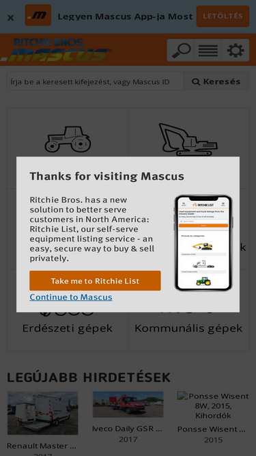 100%a web legnagyobb építőiparra, mezőgazdaságra, anyagmozgatásra, szállítmányozásra, erdészetre és komunális gépekre szakosodott piactere használtgépek adás-vételéhez.