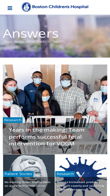 72%Answers is the content hub for Boston Children’s where you’ll find patient stories, research highlights, parenting tips, clinical updates, and news about our community.