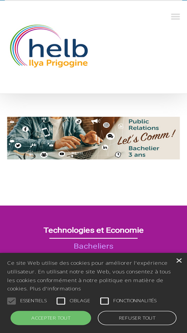 67%La Haute école libre de Bruxelles Ilya Prigogine (HELB) est un établissement basé à Bruxelles d’enseignement supérieur de type libre et non-confessionnel