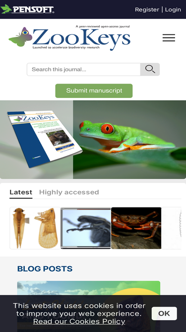 92%ZooKeys is a peer-reviewed, open access, online and print, rapidly published journal, launched to support free exchange of ideas, data and information in all branches of Zoology. It is one of the most dynamic, innovative and technologically advanced scholarly journals in its field. Zookeys was the first to implement semantic tagging and enhancements of content since the publication of its issue 50 in 2010. Currently, ZooKeys takes second place in the Index of Organism Names among the top 10 journals publishing the greatest number of new taxa in Zoology.