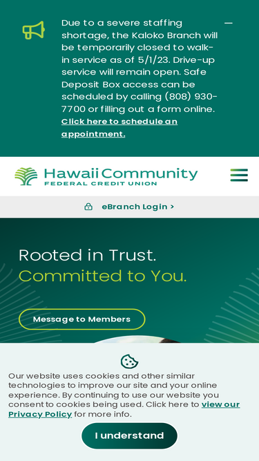 100%hawaii community federal credit union, located in the county of hi, offers members personal, student and business accounts as well as loans. explore today.