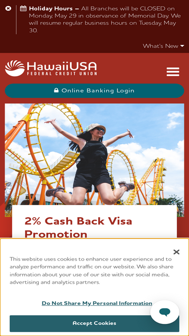 95%At HawaiiUSA Federal Credit Union, we offer competitive mortgage rates, personal and car loans, savings accounts and more. Explore products and services.