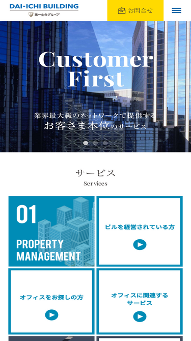 100%物件に関するお問合せをウェブサイトから行えます。全国約300棟のトータルビルマネジメントのスペシャリティ企業・第一ビルディング。