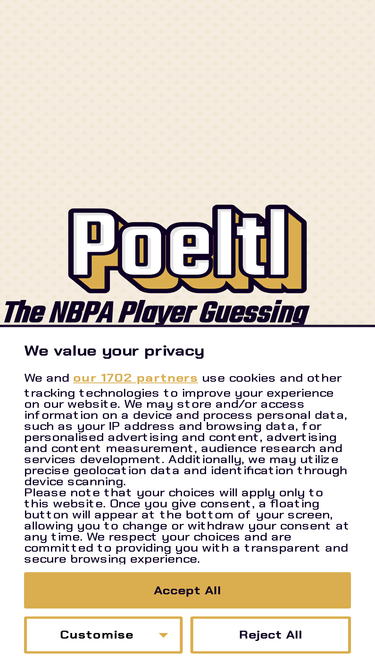 90%Poeltl. The NBPA player guessing game. Try to guess the mystery player in 8 guesses. New mystery players every day at midnight EST!