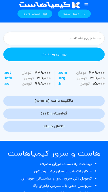 82%هاست ویندوز, هاست لینوکس, سرور اختصاصی لینوکس, سرور مجازی لینوکس و ثبت دامنه (دامین) برخی از خدمات کیمیا هاست هستند.