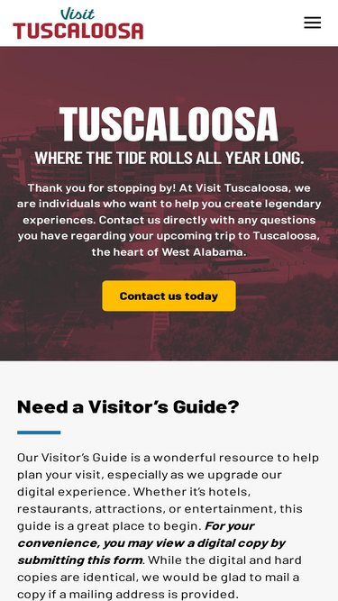 74%The Visit Tuscaloosa calendar showcases public, visitor-facing experiences – festivals, concerts, spectator sports, tours, seasonal celebrations, bookable
