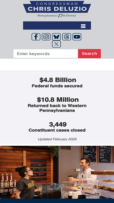 85%Complete and submit this form to apply to serve as an intern in Congressman Chris Deluzio’s Washington, D.C. office or one of his district offices in Carnegie, PA and Center Township, PA. The application deadlines for each internship class are as follows:2026 DC Internship Summer TermApplications due by March 15, 2026 -- applications are closed