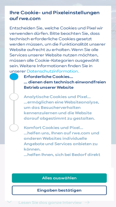 88%Sie haben eine Frage zu den Themen, Produkten und Dienstleistungen von RWE? Gerne beraten wir Sie dazu persönlich. Füllen Sie hierfür unser Kontaktformular aus.