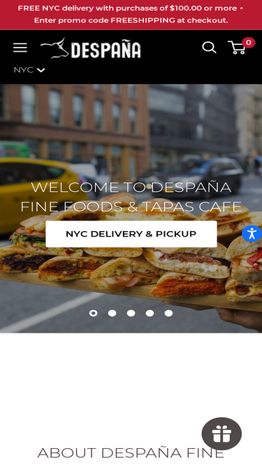 74%Welcome to your Spain in the city. Located in the heart of SoHo, Despaña Fine Foods & Tapas cafe is a specialty grocery store that features gourmet brands from Spain, along with a tapas cafe that showcases our imported specialties through simple and delicious preparations.