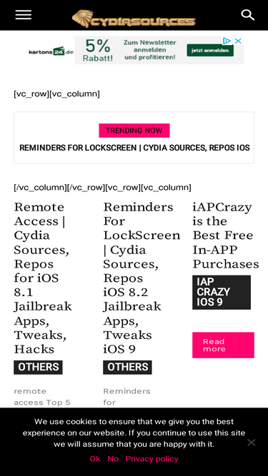 85%This is a list of some of the best sources available now. This list will be an on going project updated frequently. So if you know a cool repo we should add please leave a comment below or send us an email through the contact page above, It's all about sharing the knowledge guys so let's get acquainted. Sources or Repos Available March 26, 2013 1. http://apt.if0rce.com 2.http://ihacksrepo.com Favorite 3. http://apt.modmyi.com 4. http://sinfuliphonerepo.com 5. http://repo.hackyouriphone.org 6. http://ihackstore.com/repo 7. http://cydia.xellizes.com Very popular 8. http://repo.insanelyi.com Favorite 9. http://repo.biteyourapple.net 10. http://cydia.myrepospace.com/Bl00dra1n/ -> Get appsync 6.0+ here 11.http://cydia.heaveniphone.com Find the Hip Store here. Many users have turned to this source since installous shut down.