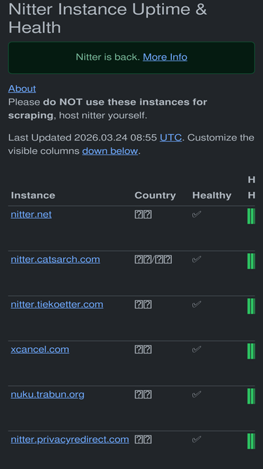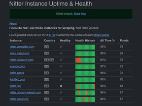 62%nitter instance uptime and status tracker.