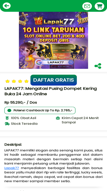 75%LAPAK77 memiliki slogan anda senang kami puas, situs ini hadir sebagai membantu penggemar slot dalam masalah materi dengan bermain setiap hari disini kami menjamin peluang untuk menjadi jutawan. Lapak77 menyediakan berbagai fasilitas dan bonus besar yaitu mulai dari rtp win rate tertinggi, lucky weels, livechat ramah, depo cepat, wd cepat dan bonus dari new member sampai member setia.