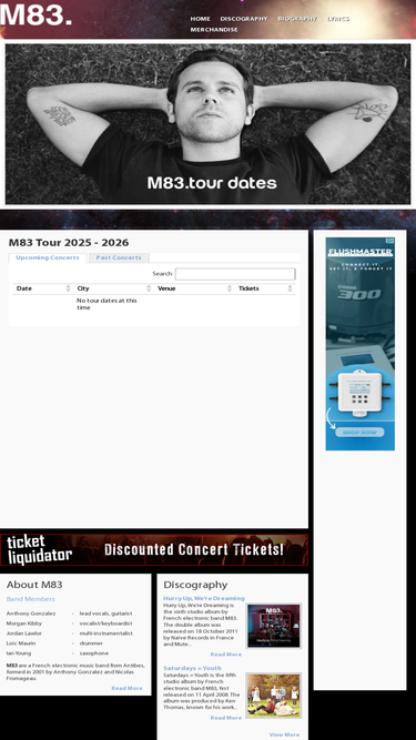 M83 2026 - 2027 Tour Dates for their current Tour! Includes M83's current concert schedule and past tour dates for your convenience!