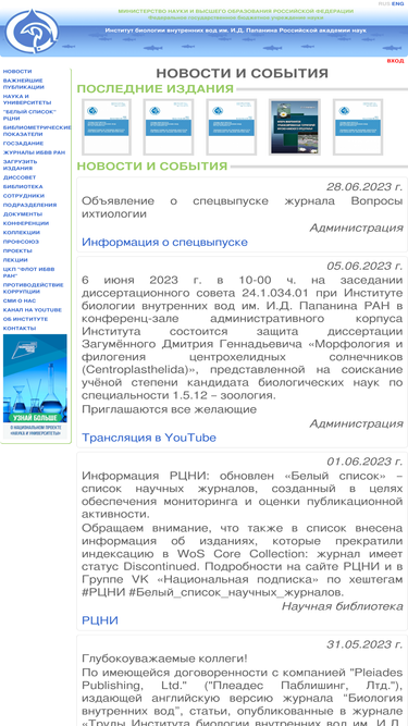 95%институт биологии внутренних вод имени ивана дмитриевича папанина ран
