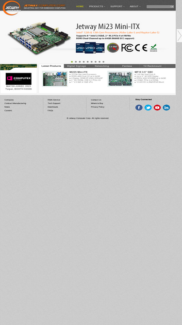 99%https://jetwayipc.com/company-overview/?lang=enJetway Information Co., Ltd. was established in Taipei in 1986, and Jetway is committed to the development, production and sales of professional industrial computer motherboards and computer peripherals. The main products are: industrial embedded boards, industrial standard systems, rack-mounted servers and industrial flat-panel computers, through regional system integrators and Agent channels, to provide OEM, ODM and EMS services, distribution to the global market.