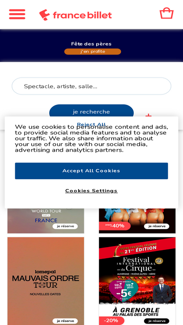 54%billets pour de nombreux événements. réservez dès maintenant concerts, spectacles, théâtre, musées, sports, parcs d'attractions sur france billet