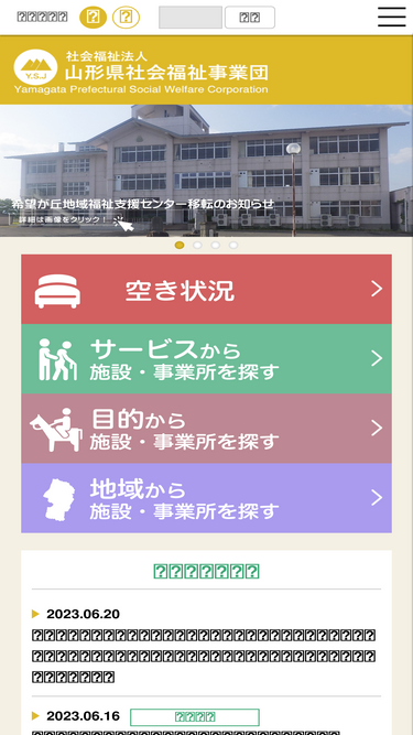 89%山形県民の福祉向上を目的に行政の福祉施策に沿い、これを補完する山形県社会福祉事業団のサイトです。