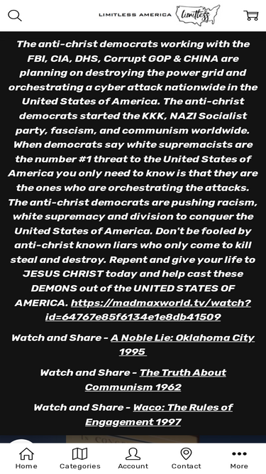 Shop the Official Alex Jones Store, your go-to for patriotic apparel. Explore our range of T-shirts, hats, stickers, hoodies, and more, each designed to showcase your love for freedom and truth. Stand out, make a statement, and support the cause with every purchase. Embrace your patriotic spirit here!