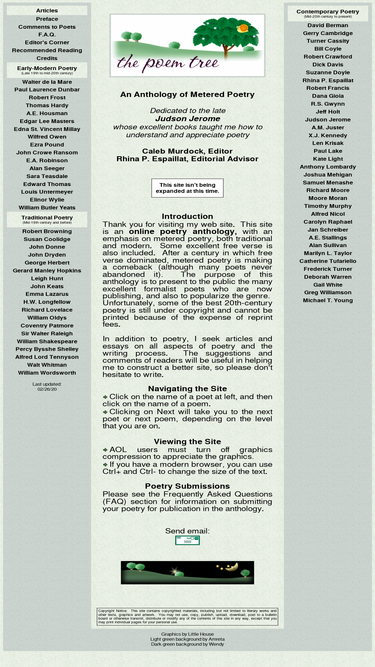 85%an online poetry anthology featuring metered poetry and some free verse.