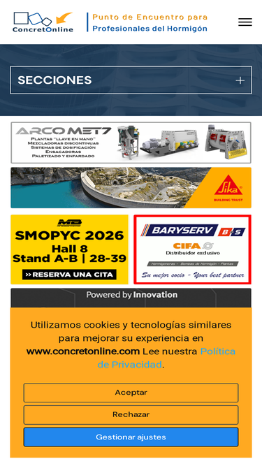 81%concretonline, información técnica del hormigón, concrete, cementos, prefabricados, áridos, aditivos, morteros. fábricas de hormigón preparado, explotaciones, canteras y graveras así como toda la maquinaria y equipos