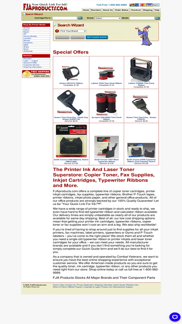 98%fja products offers a complete line of printer ink & toner cartridges, printer & typewriter ribbon, p-touch tapes/ printer labels, as well as other printer, fax & copier supplies.