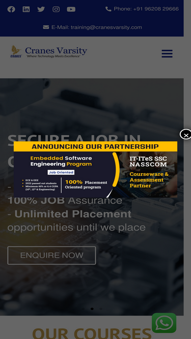 92%NASSCOM and Cranes Varsity have joined forces to provide cutting-edge training and certification programs in the fields of Embedded Program