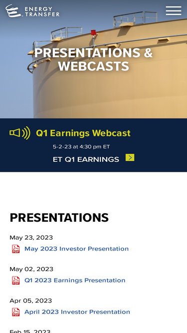 96%The Investor Relations website contains information about Energy Transfer's business for stockholders, potential investors, and financial analysts.