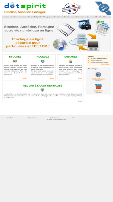 53%dotspirit propose aux particuliers et aux professionnels (tpe / pme) des solutions de stockage en ligne sécurisé (stockage cloud & sauvegarde en ligne) et hébergé en france, pour protéger, sauvegarder, stocker et partager de façon sécurisée votre vie numérique en ligne, ainsi que pour télécharger des torrents de façon rapide et sécurisée avec notre seedbox. un mois d'essai gratuit et sans engagement.