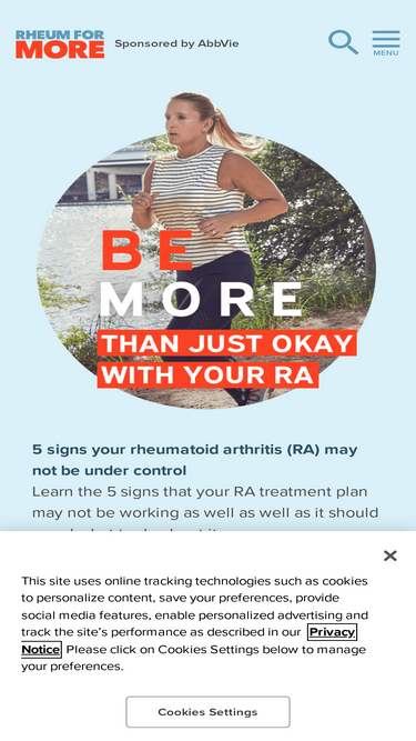 65%discover rheum for more, a website offering rheumatoid arthritis education, tips, & management for people living with ra who want more out of their lives.