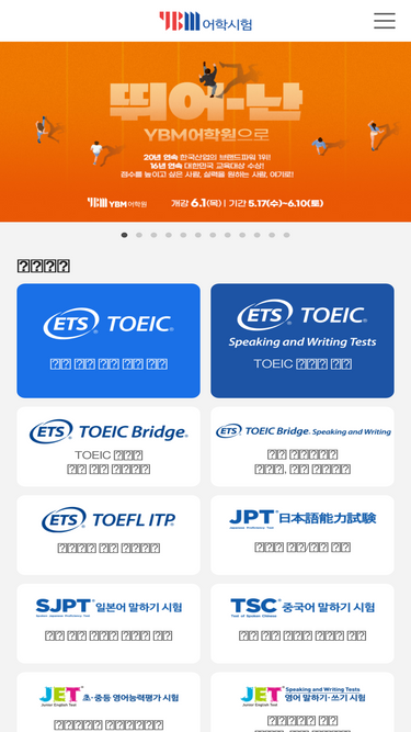 68%YBM 어학시험 TOEIC ∙ TOEIC Speaking ∙ JPT ∙ SJPT ∙ TSC ∙ JET ∙ TOEIC Bridge 시험 접수, 성적 확인, 시험 일정 안내