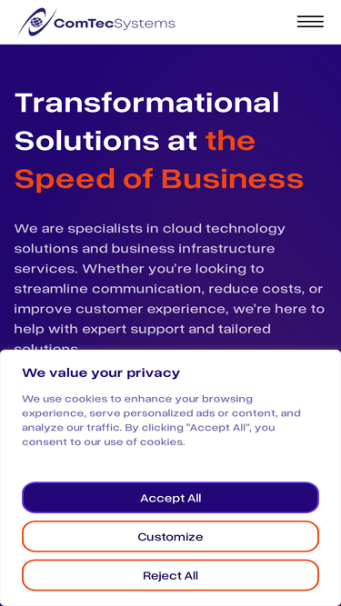 100%comtec usa is a regional provider of a suite of cloud technology solutions and business infrastructure services for nearly three decades. our highly-skilled team of professional engineers can help you to efficiently design, install, and manage your voice, data, and video infrastructures with white-glove support.