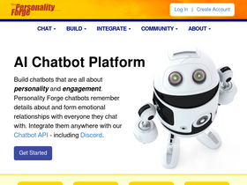 100%The Personality Forge's Chatbot API lets you interface with your chatbots through web and mobile applications, chat networks, text messaging, and even robots or toys.