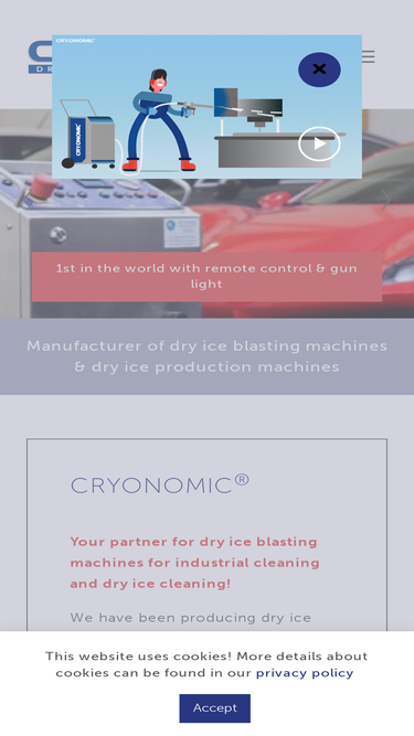 85%manufacturer of dry ice blasting equipment, dry ice production machines and accessories. count on the expertise and extensive possibilities at cryonomic.