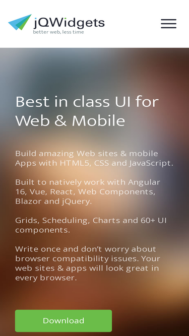 82%the leading html5 ui widgets framework. build responsive web apps with angular, react, vue, web components and jquery. run on any browser and device.