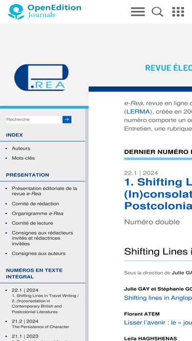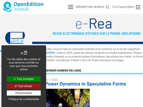 66%e-rea. revue électronique d’études sur le monde anglophone. revue du laboratoire d’études et de recherche sur le monde anglophone. la revue a été créée en 2003. elle publie des articles consacrés aux études anglophones.
