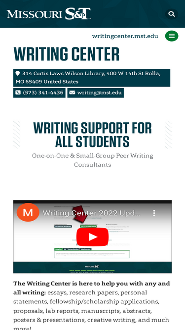 71%The Writing Center is here to help you with any and all writing. Our friendly peer writing coaches are available to help you produce your best work, no matter your skill level or topic.