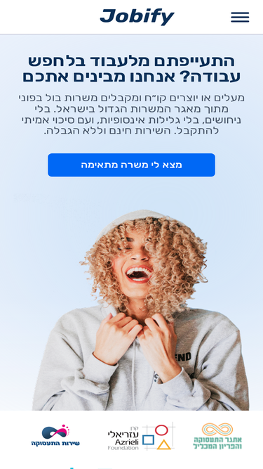 52%ג'וביפיי (Jobify) ממציאה מחדש את הדרך למצוא עבודה ולהתפתח מקצועית! המערכת מזהה את הכישורים שלך, מציעה משרות שמתאימות לך ומגלה מסלולי לימוד חדשים. הגיע הזמן לקחת את הקריירה שלך צעד קדימה! השימוש במערכת חינם וללא הגבלה