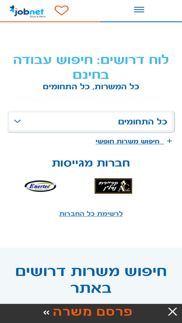 94%חיפוש עבודה חופשי וללא תשלום | פרסום מודעות דרושים חינמי, גישה לכל מודעות הדרושים, הפצת קורות חיים והגשת מועמדות חופשית.