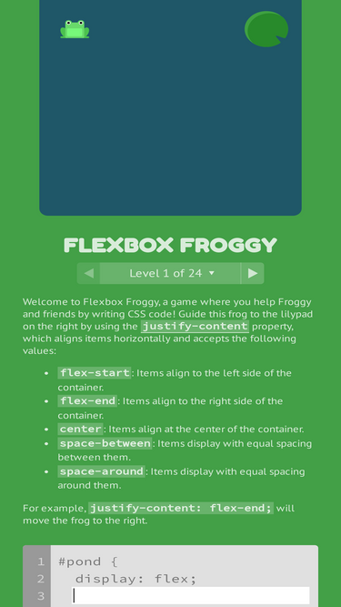 100%A game for learning CSS flexbox