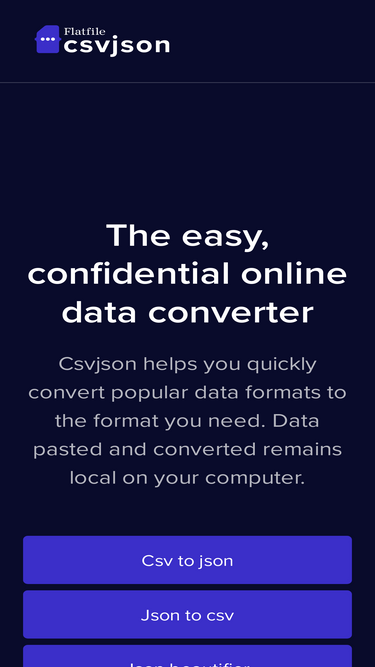 91%online conversion tools for developers. csv, json, sql and javascript. sponsored by flatfile.
