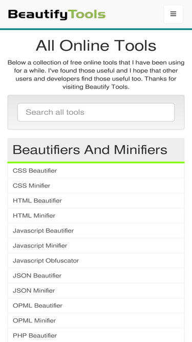 84%useful online tools like beautifiers, minifiers, converters, utilities, validators, editors for users and developers.