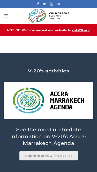 79%The Vulnerable Twenty (V20) Group of Ministers of Finance of the Climate Vulnerable Forum is a dedicated cooperation initiative of economies systemically vulnerable to climate change. The V20 works through dialogue and action to tackle global climate change.
