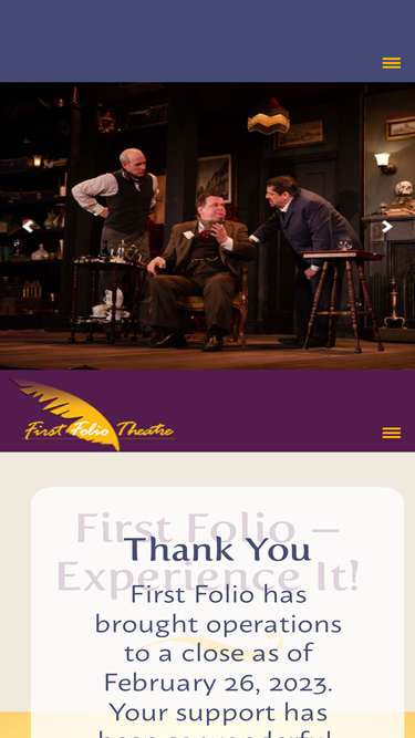 100%As the premier non-profit professional theater in the western suburbs, First Folio’s mission is to present intimate productions of classic and contemporary works. By making our home in residence at Mayslake Peabody Estate, we create a unique theatrical experience that enriches the community.