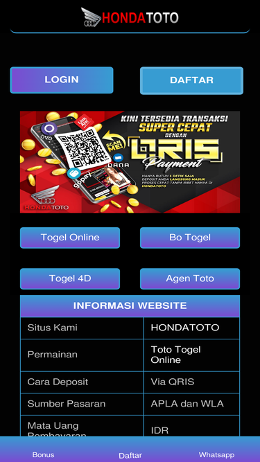 88%Login Hondatoto untuk mengakses situs lotto togel no 1 di server idn. Bagi anda yang doyan main toto macau, bandar lotre online Honda toto adalah tempat yang bagus untuk memasangnya. Dengan bet murah kalian akan terima bayaran jackpot togel terbesar.