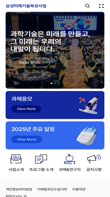 57%한국 과학기술 발전과 과학기술인 육성을 위한 사회공헌 사업! 공익법인 삼성미래기술육성재단과 삼성전자 미래기술육성센터가 밝은 미래를 열어 나아갈 창의적이고 도전적인 프런티어 연구를 지원합니다.