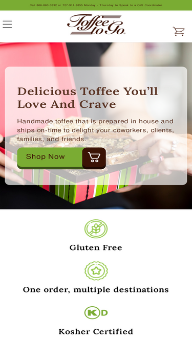 86%Our decadent dark chocolate pecan toffee blends sweet creamery butter with pure cane sugar to create a rich, bubbling, aromatic mixture. Paved with pecans and covered with a thin layer of pure semi-sweet high quality dark chocolate to yield a luscious melt in your mouth flavor. This gourmet treat is then sprinkled with chopped walnuts. With several decorative packaging options, it is the perfect holiday gift, corporate gift, party favor or treat for yourself. Eliminating gluten from your diet does not mean sacrificing flavor. Our decadent dark chocolate pecan toffee is Gluten Free! This sweet treat is the perfect gift for the Gluten Free people on your list! All flavors are gluten-free and have no added preservatives.