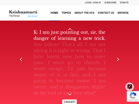 69%Krishnamurti Foundation India is a site dedicated to the works and teachings of J Krishnamurti.