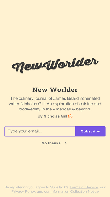 100%the culinary & travel journal of james beard nominated writer nicholas gill. an exploration of cuisine and biodiversity in the americas & beyond. click to read new worlder, by nicholas gill, a substack publication.