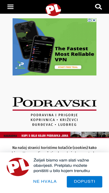 87%Najnovije lokalne vijesti ● Podravina i Prigorje ● Koprivnica ● Križevci ● Đurđevac ● Ludbreg ● Crna Kronika ● Nogomet ● Zdravlje ● Sport