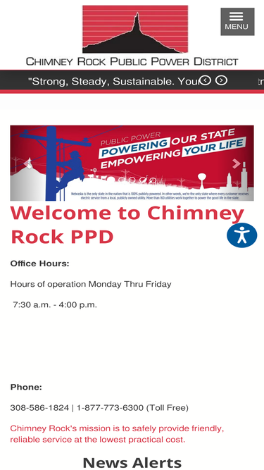 100%chimney rock is a not-for-profit political subdivision of the state of nebraska and subject to laws enacted by the legislature. nebraska is the only state in the u.s. that is 100 percent public power, which means local control and electric rates that are lower than the national average.
